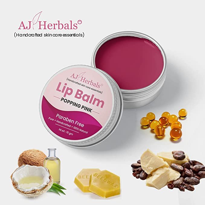 AJ HERBALS Beetroot Tinted / Frosted Raspberry/ Popping Pink Lip Balm Is Made From 100% NATURAL Safe Ingredients: Formulated With All Natural Ingredients Like Beetroot Extract, Coconut Oil, & Almond Oil Shea Butter, It Is Safe And Gentle For Your Sensitive Lips. The Lip Balm Is Free From Sulfates, Parabens, SLS, Petroleum, Artificial Preservatives & Colors. handmade lip balm are made purely from organic oils and butters.