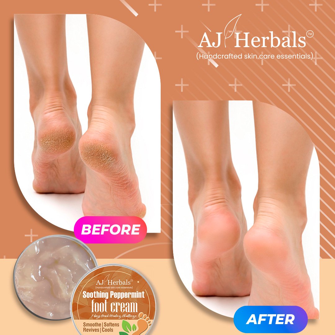 AJ Herbals Soothing peppermint foot cream is a concoction of henna and peppermint hydrosol that gives super results on your tough cracks and sore feet.